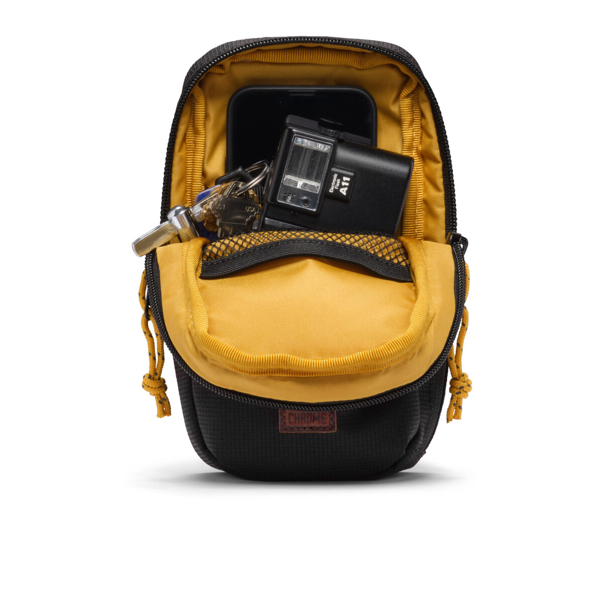 Die Ruckas Accessory Pouch ist das vierte Modell der nachhaltigen Kollektion von Chrome Industries. Die kleine Tasche kann man crossbody sowie über die Schulter tragen. Ebenfalls möglich ist die Befestigung am Gürtel – die perfekte Mini-Bag für wichtige Dinge wie Geldbeutel, Handy und Schlüssel.